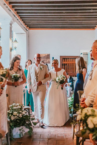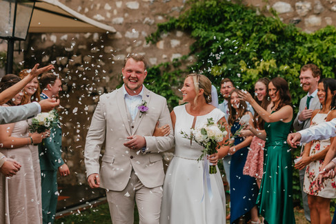 Charlie waited eagerly for the moment he would finally see his bride arrive. Their ceremony was beautifully simple and heartfelt, focused on the two of them and the people closest to them. As soon as they were pronounced married, everyone spilled out into the courtyard for a joyful shower of confetti.