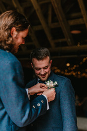 The dining area of the barn was set for a feast, with long banqueting tables, stunning greenery and floating candles galore. Fraser's dad acted as compere for their toasts during the meal ā he was hilarious and definitely set the tone for the rest of the speeches!